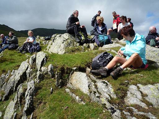 A and B walkers at Hole-in-the-Wall. Striding Edge starting to show itself in the distance.
